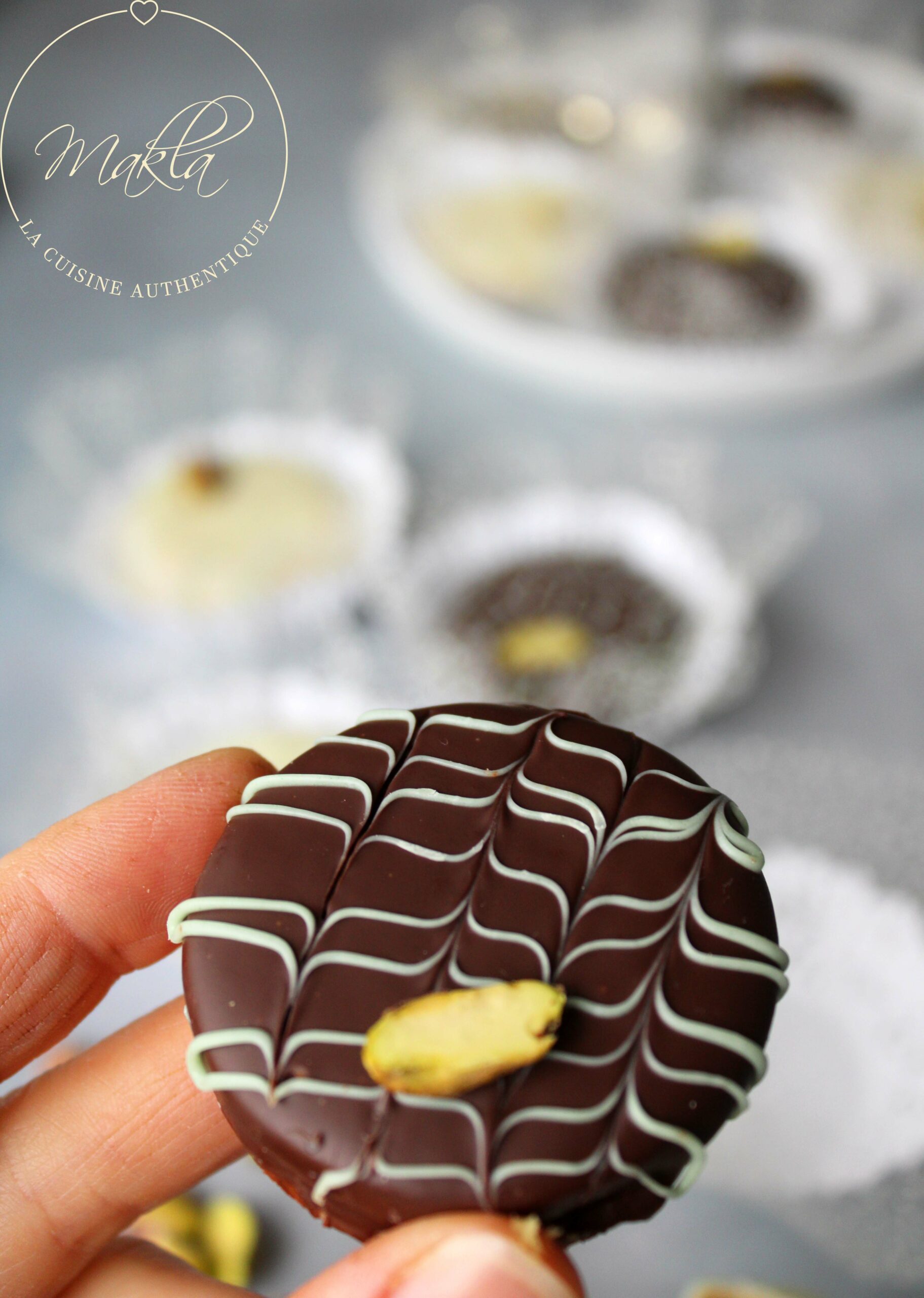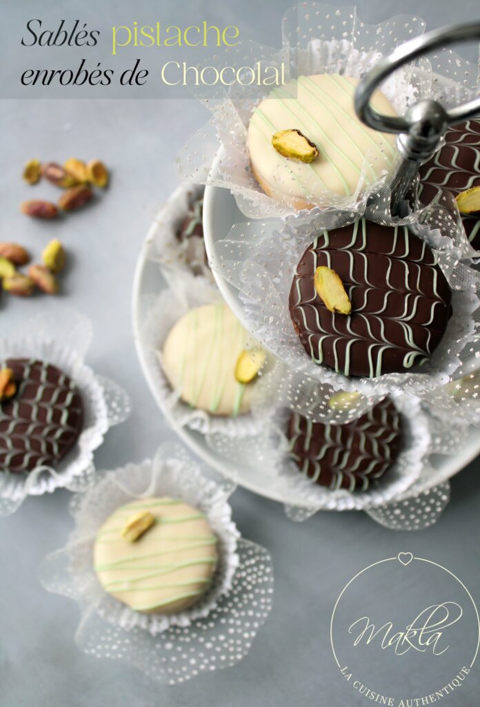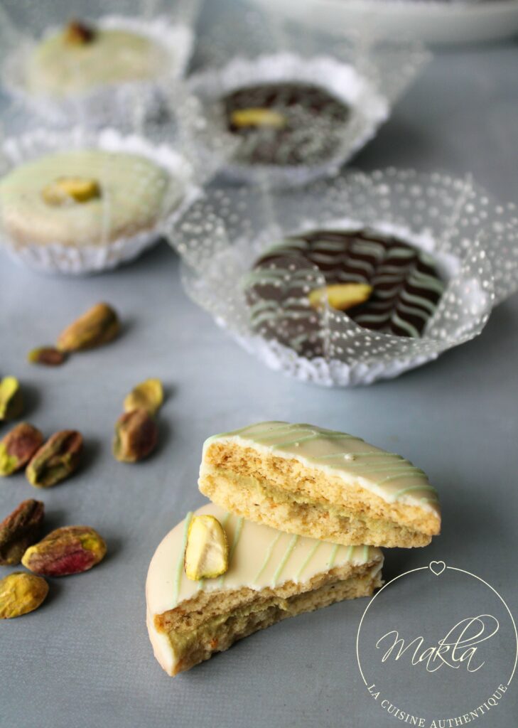 J’ai donc choisi cette année de réaliser des biscuits à la pistache fourrés à la pâte à tartiner à la pistache, puis enrobés de chocolat blanc ou noir, selon le style que vous voulez leur donner.