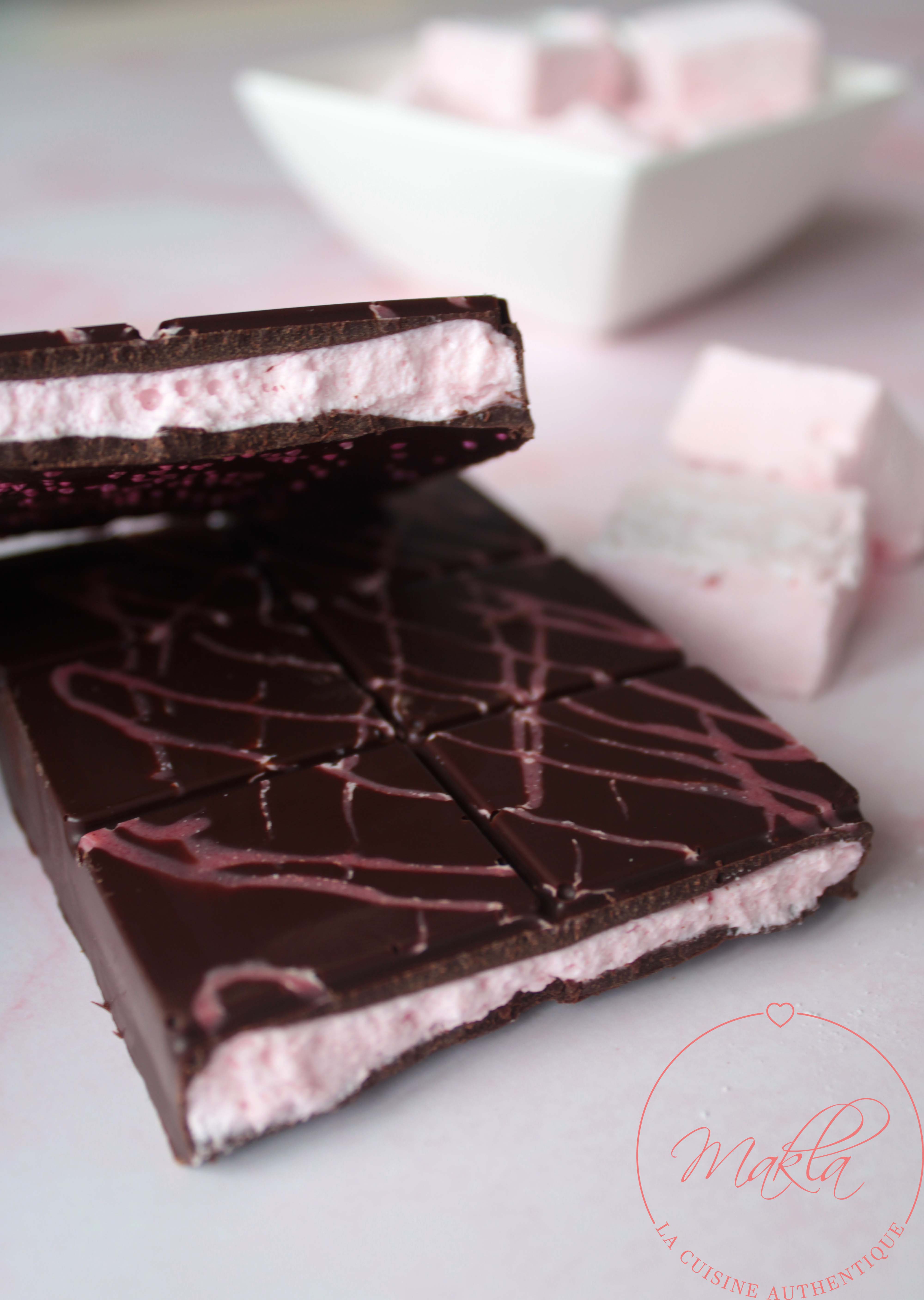 Gourmandises et régression sont au rendez-vous aujourd’hui avec cette tablette de chocolat fourrée à la guimauve, le tout 100% maison !