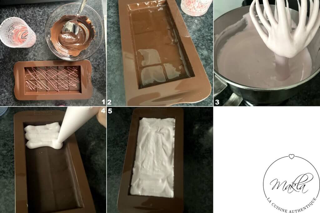Placer le moule au frais le temps que le chocolat durcisse. Pendant ce temps, nous allons préparer la guimauve.