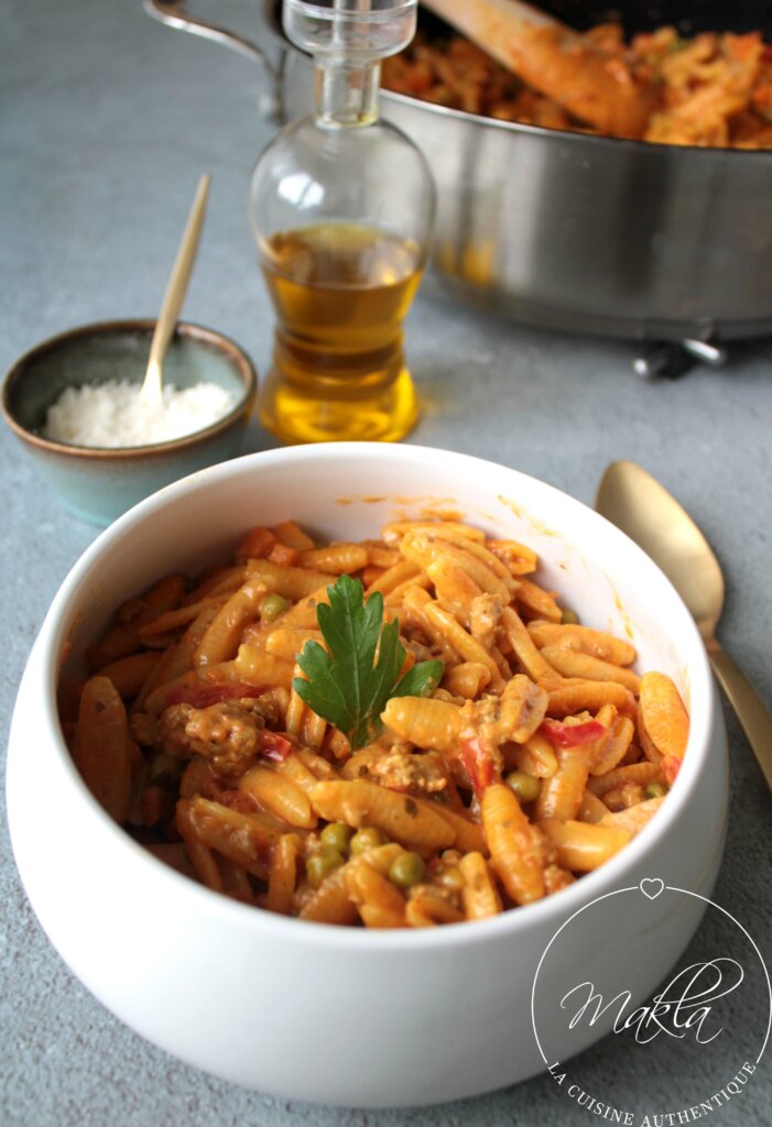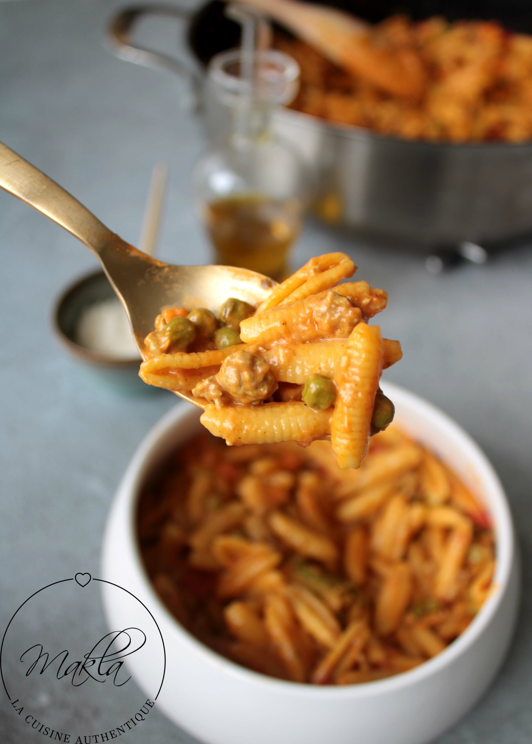 Ici on obtient de pâtes savoureuses avec une sauce bien crémeuse, un plat complet qui plait aux petits comme aux grands.